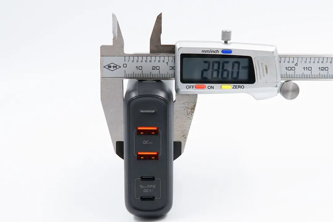 使用游标卡尺测得充电器的高度约为81.21mm。