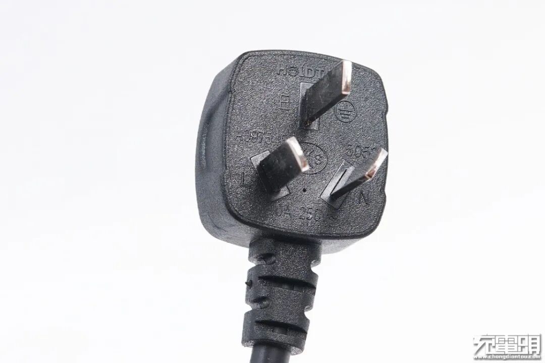 插头上带有3C认证LOGO,网尾出线口采用了开槽的防弯折包裹设计。