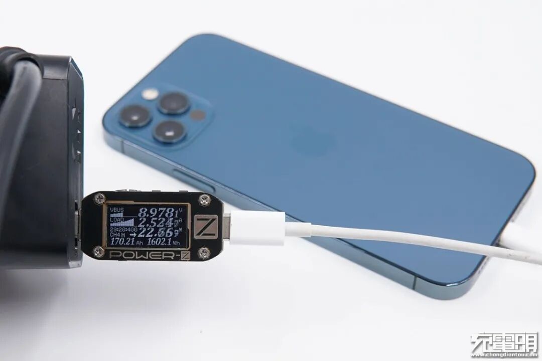 iPhone12支持USB PD和Apple2.4A快速充电协议,功率为8.90V 2.51A 22.41W。
