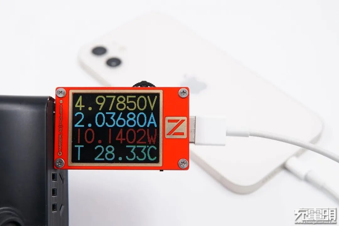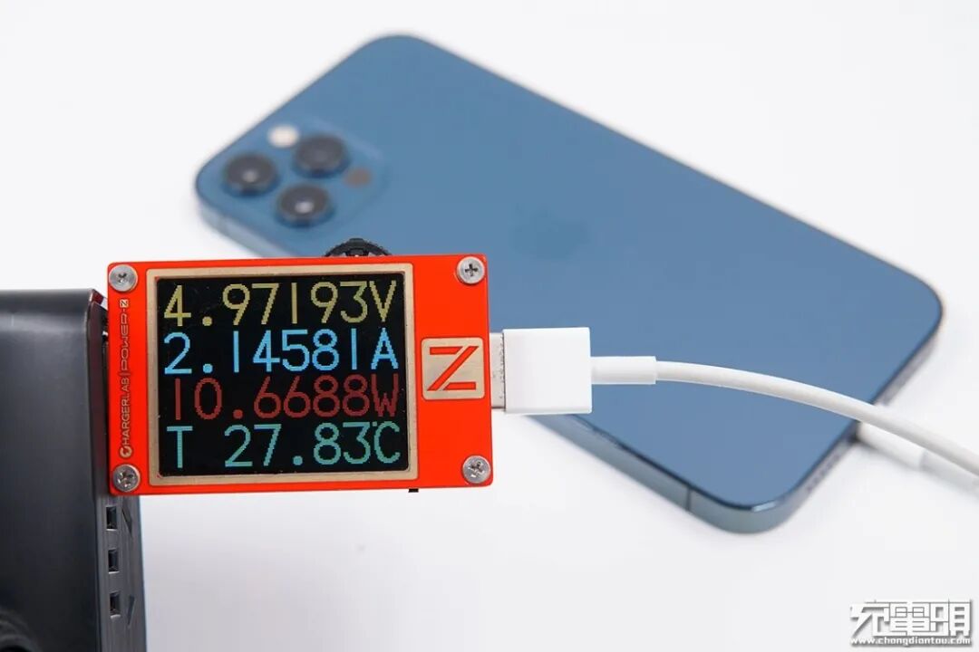 iPhone12 Pro 支持USB PD和Apple2.4A快速充电协议,使用USB-A为iPhone12 Pro充电,功率为4.97V 2.14A 10.66W。