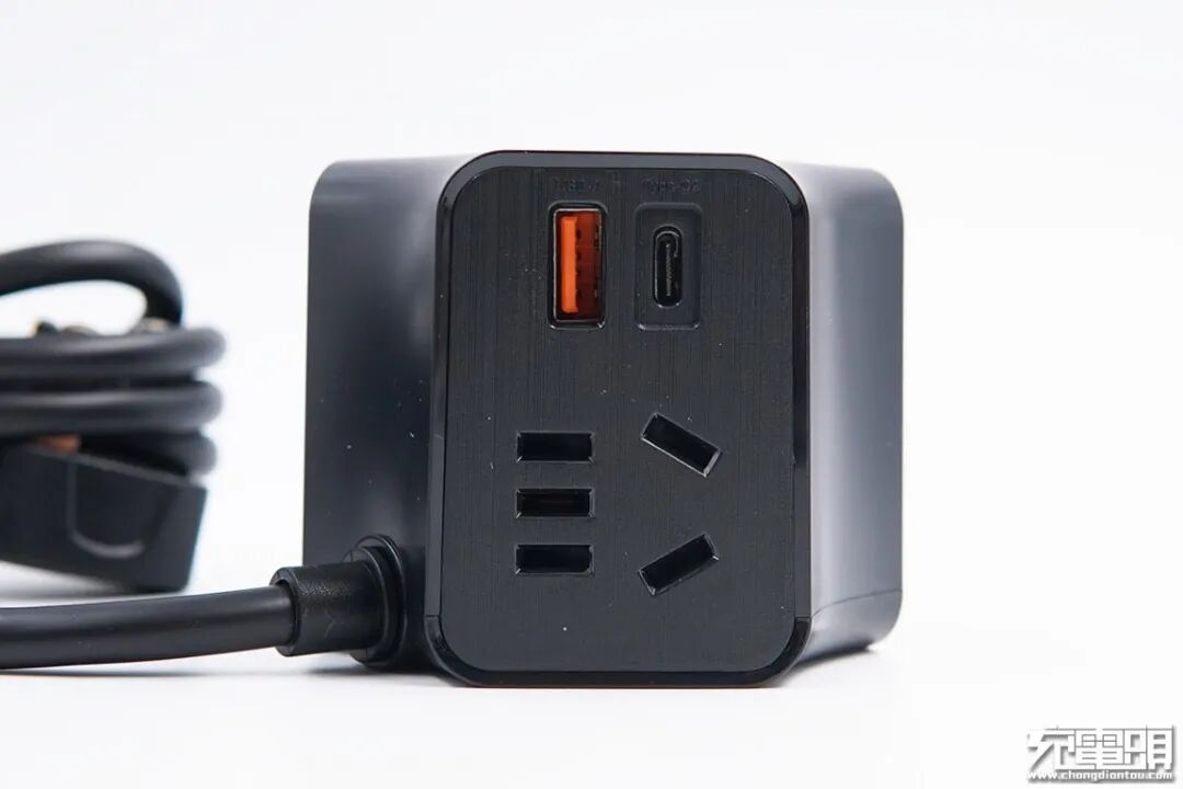 插座B面同样带有一个3+2国标插孔,上边是是USB输出模块,其中一个橘色的USB-A接口支持18W快充输出,黑色USB-C接口的支持65W PD快充输出。
