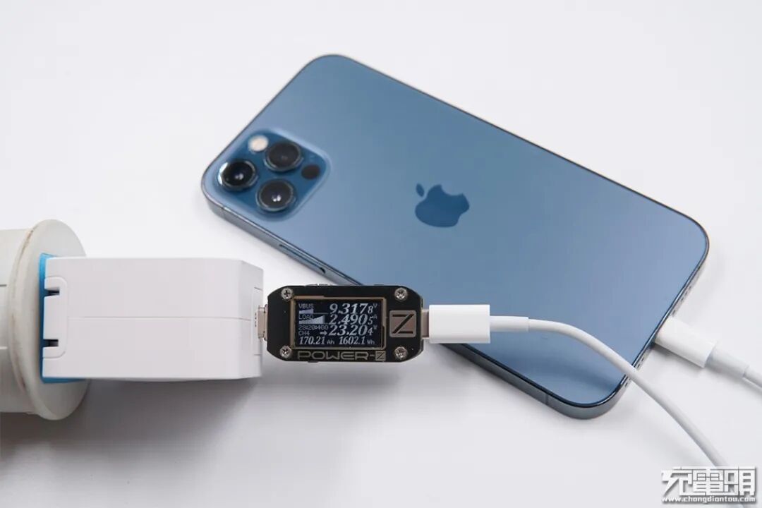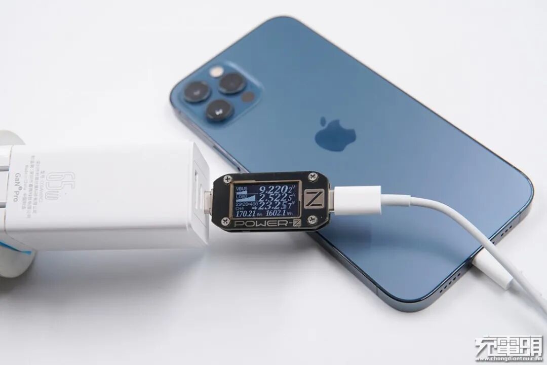 其次,苹果官方宣称iPhone 12以及iPhone 12 Pro充电功率为20W,这些65W PD充电器的测试结果多超过20W,在22W与23W之间,与30W和45W功率段的充电效果相差不大,证明20W及以下的充电器确实喂不饱iPhone 12 Pro。