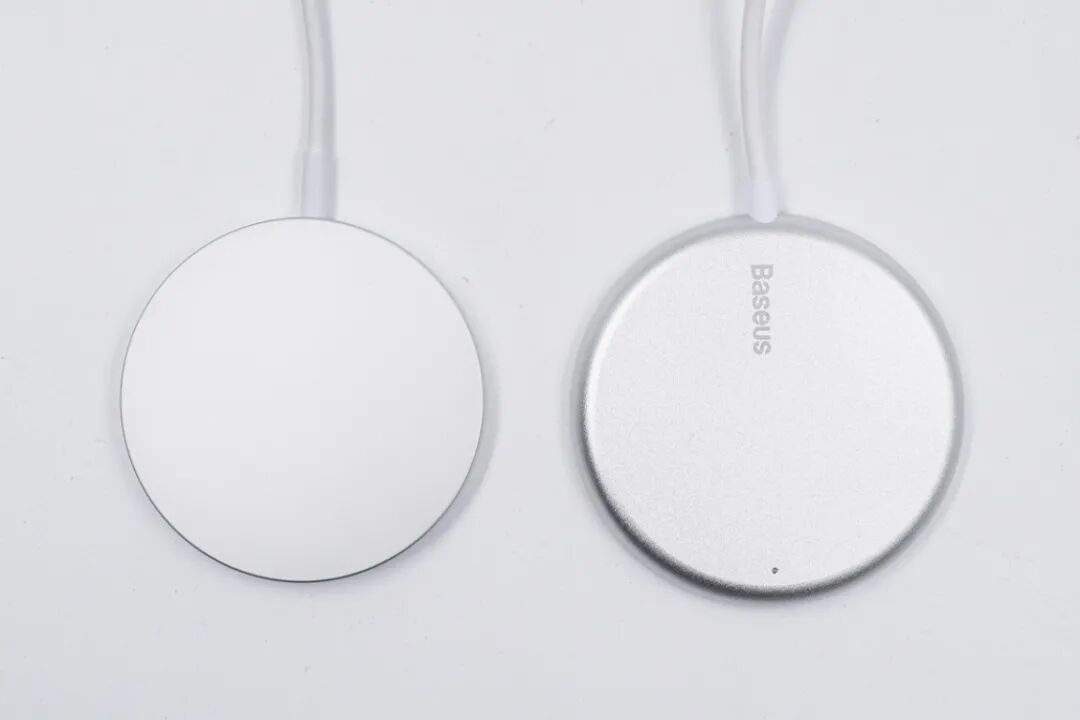 下面来看看这款充电器的外观。整体以银白色为主,与苹果MagSafe充电器一致,但整体更加圆润,手感应该不错。