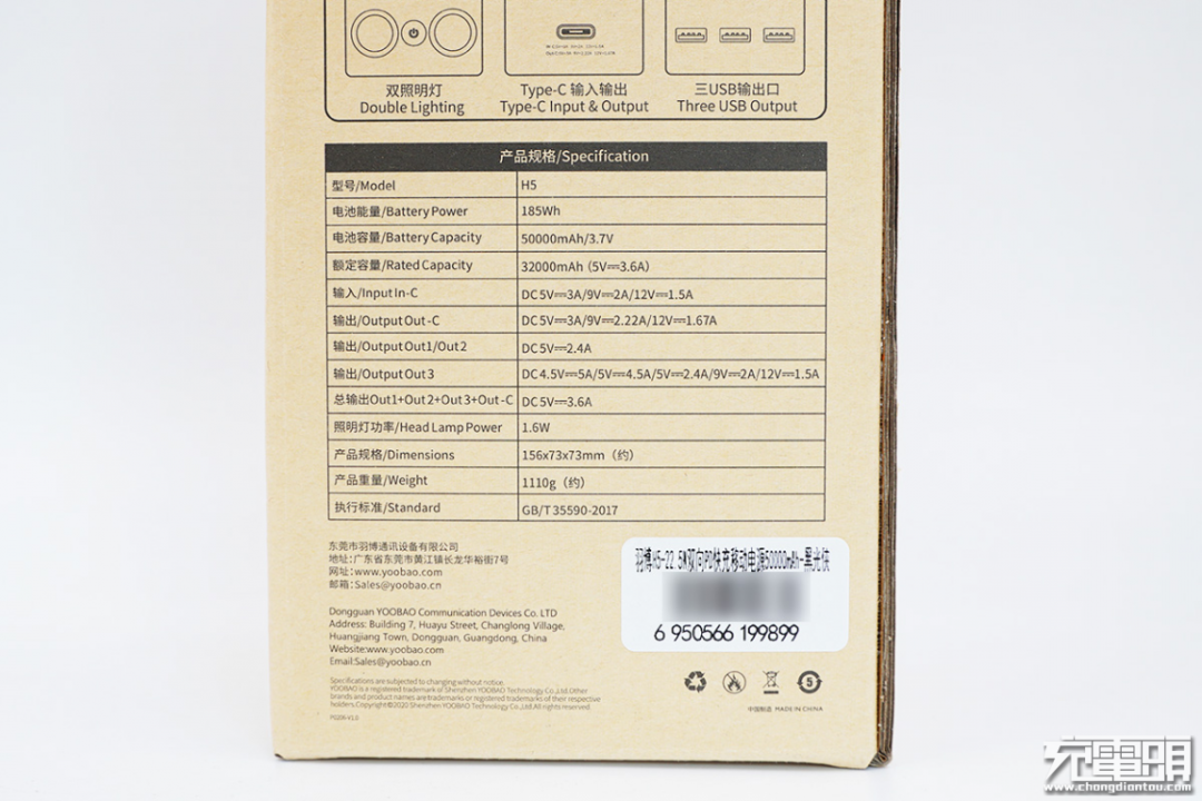 一、羽博H5充电宝包装