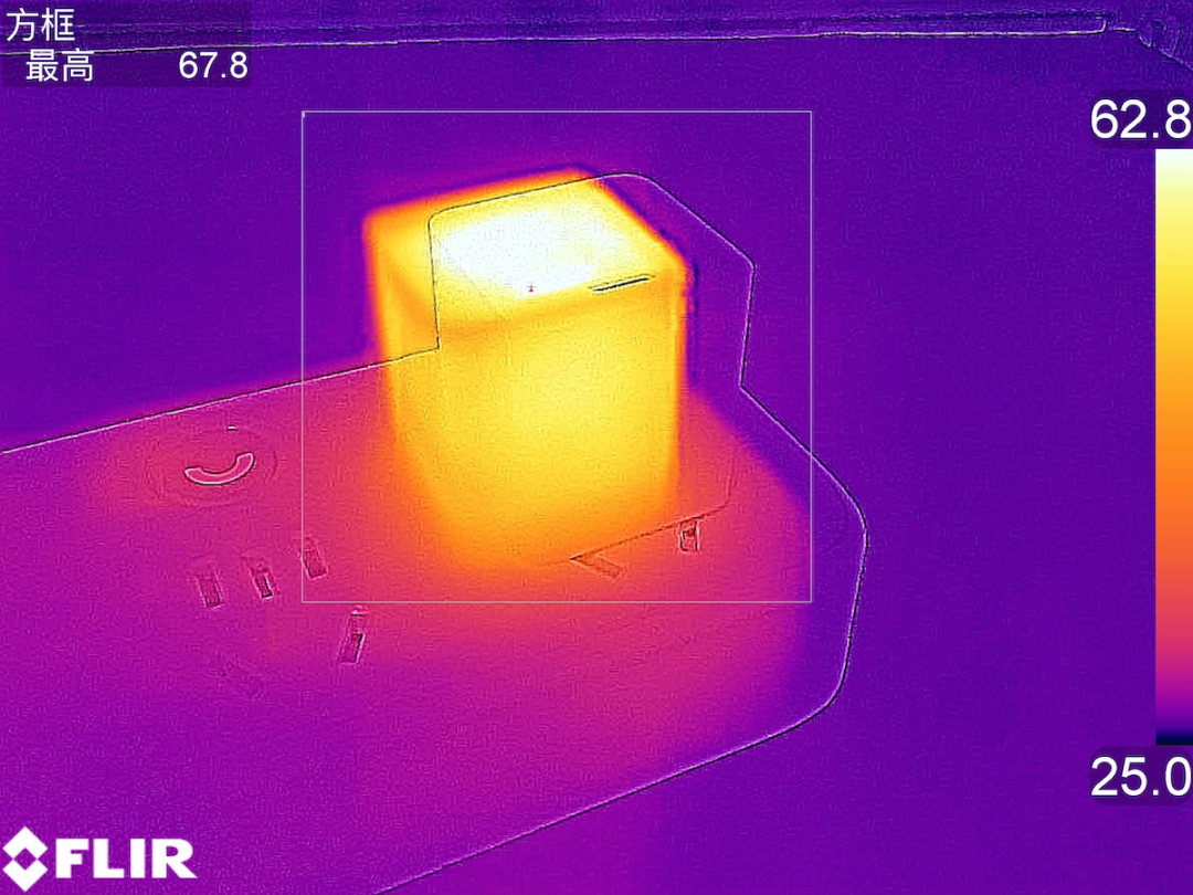 充电器的另一侧,温度为67.8℃,温升41.1℃。