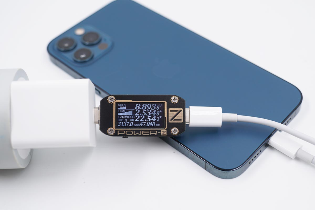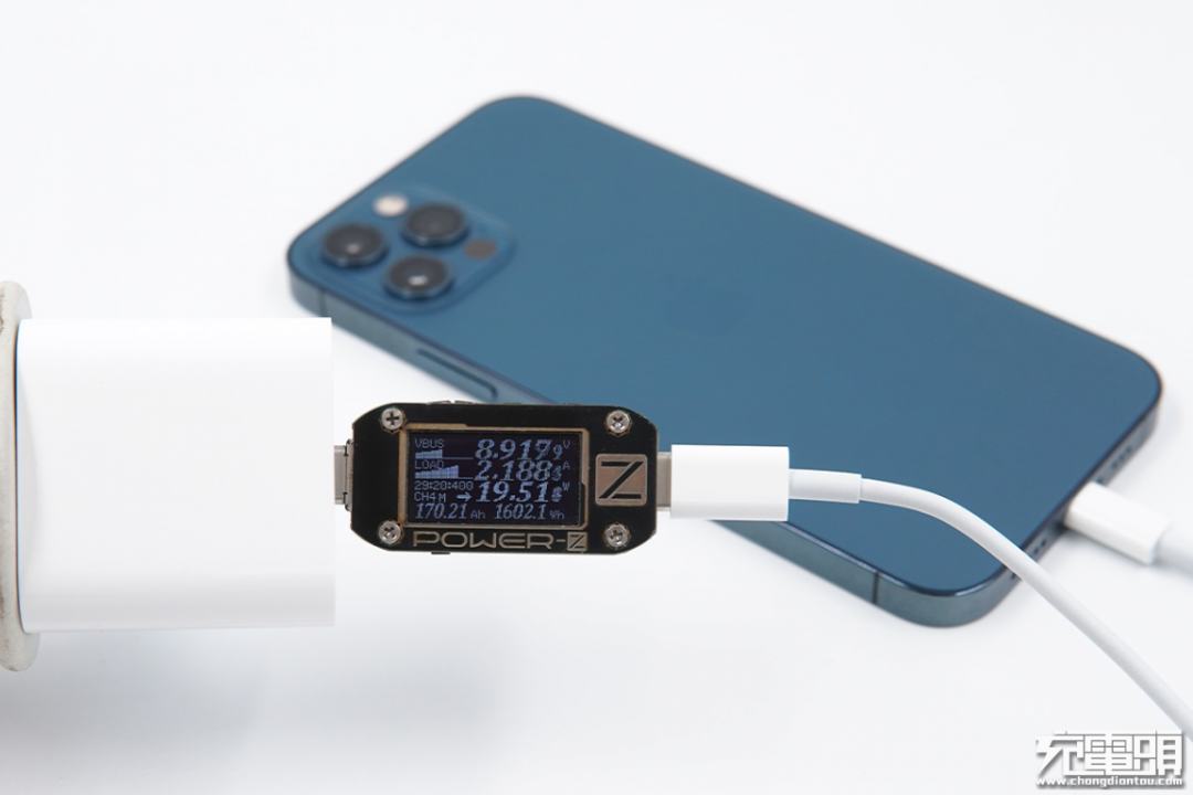 使用苹果20W PD充电器为iPhone 12 Pro充电,功率为8.91V 2.18A 19.51W。