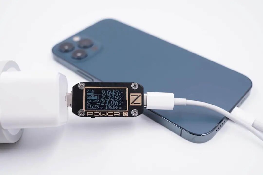 iPhone 12 Pro支持PD/Apple2.4A快充协议,使用充电器为iPhone 12 Pro充电,功率为9.04V 2.32A 21.06W。