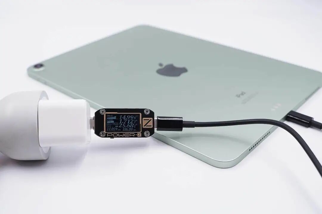 iPad Air 4仅支持PD快充协议,使用充电器为iPad Air 4充电,功率为14.99V 1.71A 25.68W。