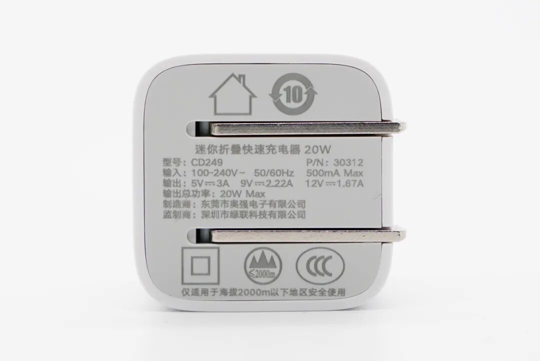 最重要的是,插脚可以折叠,对于一款体积迷你小巧的20W充电器来说,折叠插脚是极为少见的。