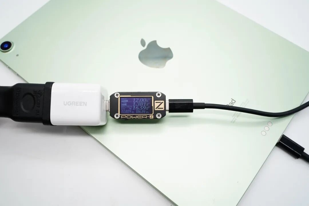 iPad Air 4是苹果最新推出的air系列平板电脑,其支持PD快充协议,使用充电器为iPad Air 4充电,功率为12.00V 1.38A 16.59W。