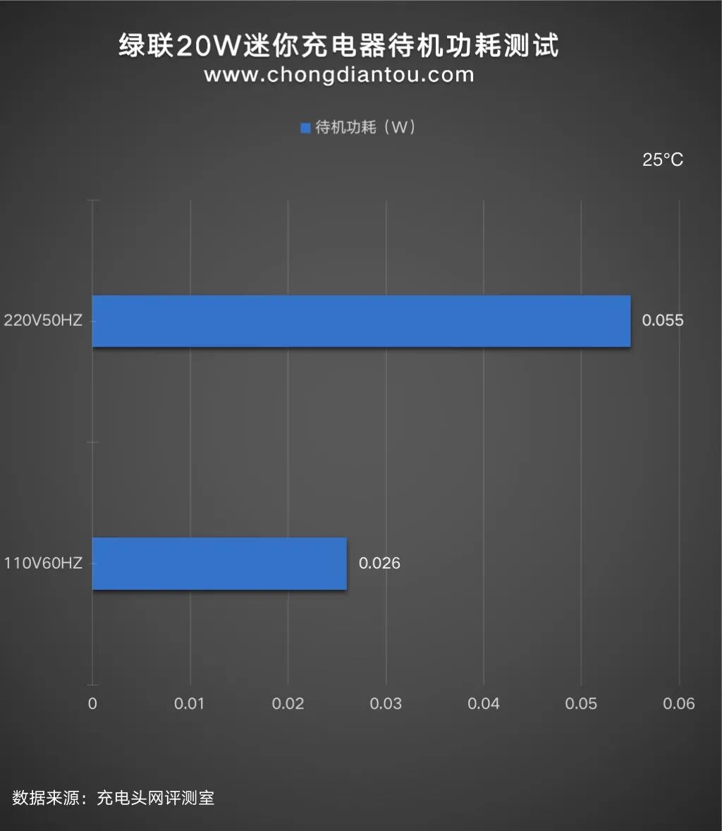 经过功率计测试,绿联20W迷你小金刚充电器在220V 50Hz的空载功耗为0.055W,换算下来一年损耗的电能约为0.48KW·h,若市价电为0.6元/KW·h,则充电器一年的空载功耗约为0.28元左右。
