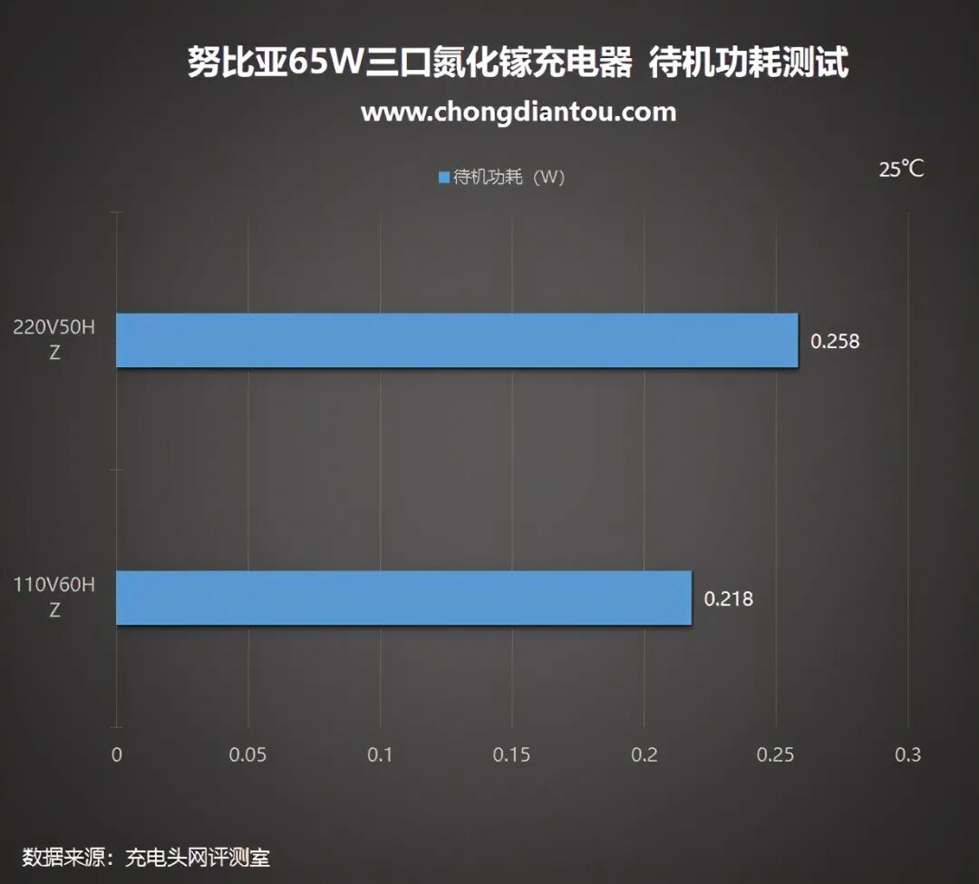一小时满载温升环节是用来测试充电器在极限使用的情况下的发热情况,用户日常使用中很少会遇到这种长时间满载的情况。手机、平板、充电宝等数码设备功率不大,温升会较为缓和,而笔记本充电则会随着电量逐渐饱和而降低功率,发热也会同步降低。目前国家标准中对充电器表面温度要求是,不高于95度,努比亚65W三口氮化镓充电器测试最高温度仍比国家标准低不少,这些温度都是符合安全使用标准的。