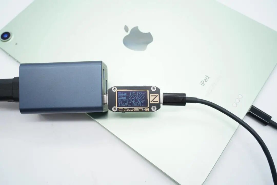 iPad Air 4支持USB PD充电协议,使用充电器为平板充电,输出功率为15.19V/2.26A,34.36W。