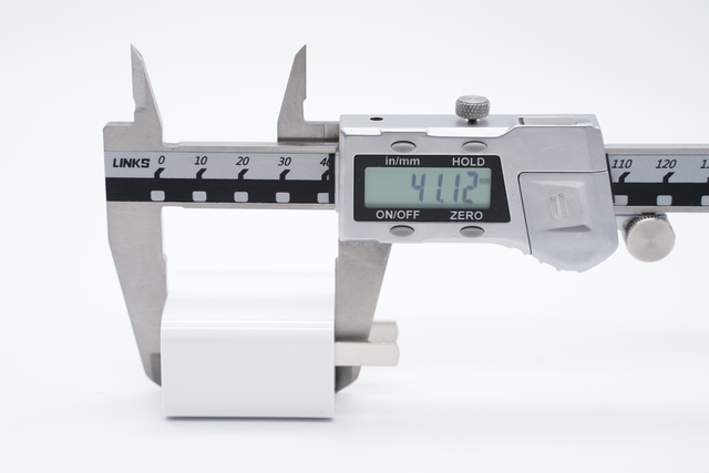 使用卡尺实测充电器的长度约为 41.12mm(不算插脚)。