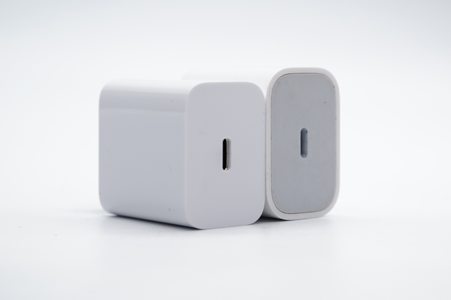 整理和苹果 20W PD 充电器放在一起,二者外观大致相同,不过 aigo 的 20W PD 充电器要小一点。