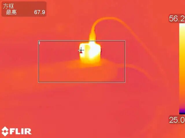 翻转至另一侧,充电器表面最高温度为 67.9℃。