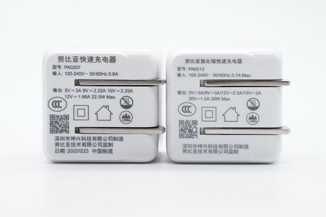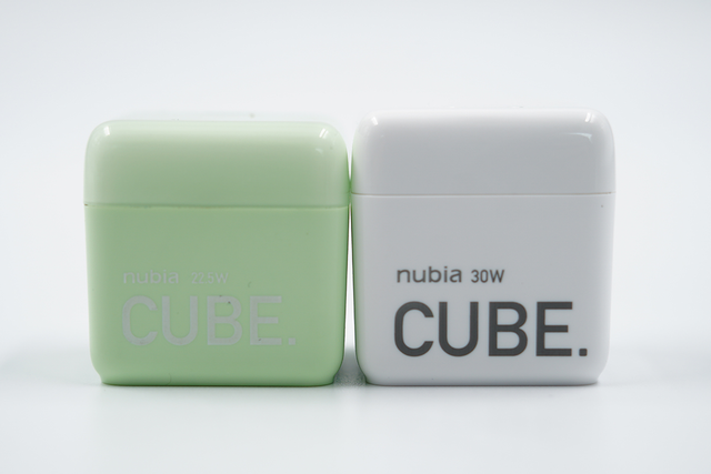 左侧为努比亚 22.5W 方糖氮化镓充电器,右侧为努比亚30W方糖Pro氮化镓充电器。目前新款仅有白色外观一种。