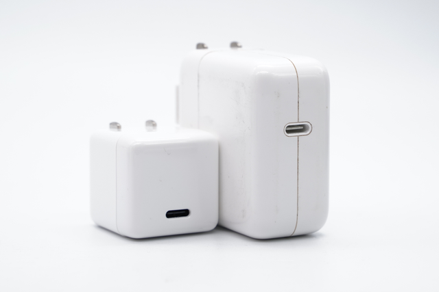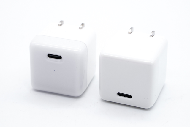 和苹果 30W PD 充电器做对比,同样的功率,不同的体积。
