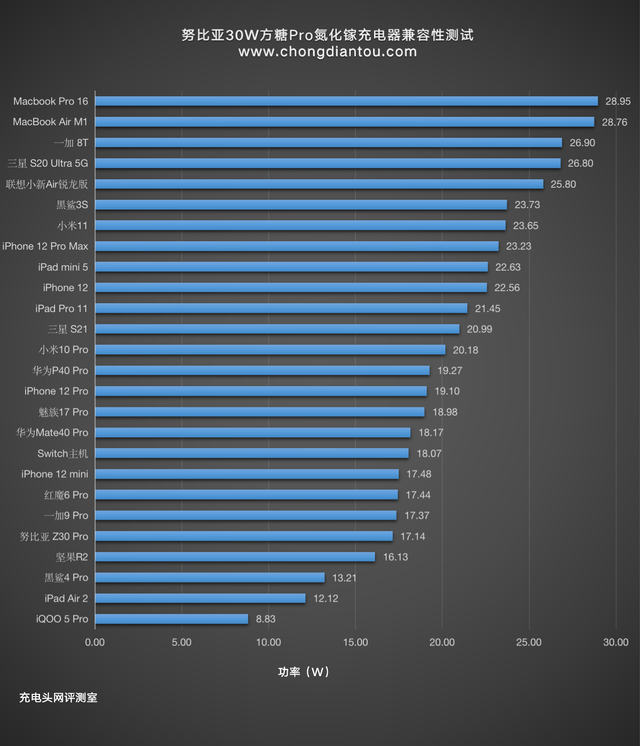 从柱状图上看,笔电的功率自然排在前面,但 30W 的功率使得整个柱状图并没有出现较大的落差,走向较为平缓。
