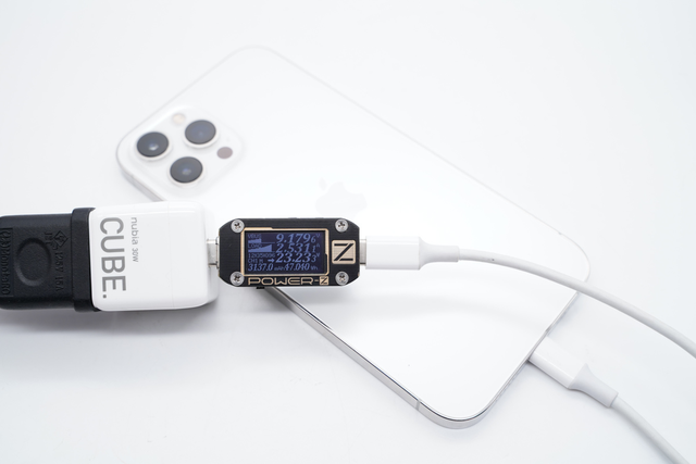 iPhone 12 Pro Max 支持 20W PD 快充,在实测时发现充电功率可以达到 23W+,努比亚 30W 方糖 Pro 氮化镓充电器可以满足手机的功率需求。