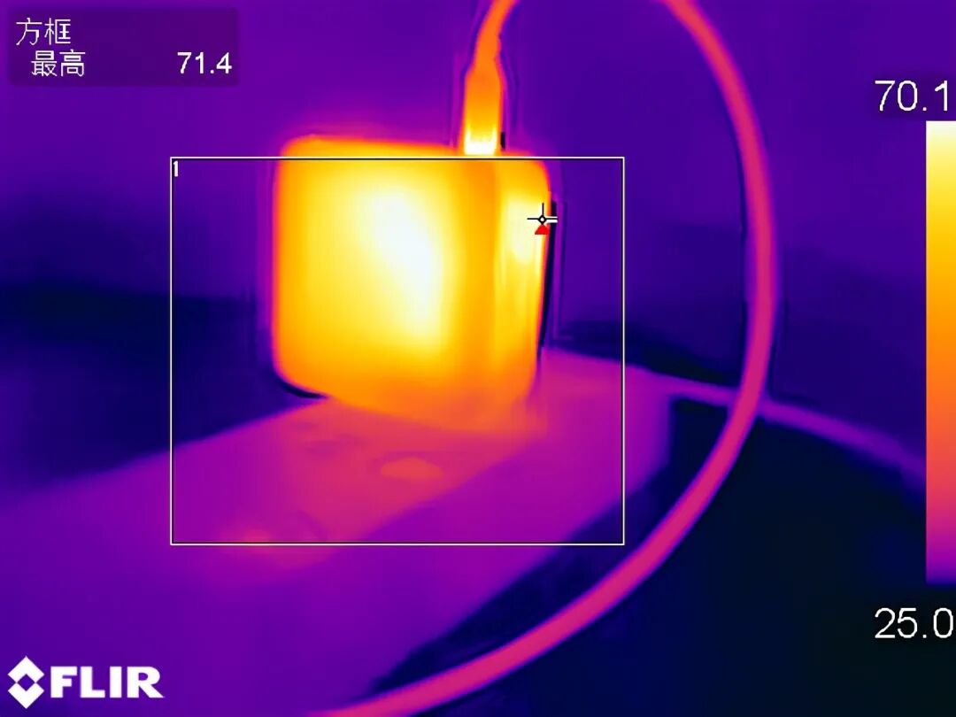 翻转至另一侧,充电器表面最高温度为 71.4℃。