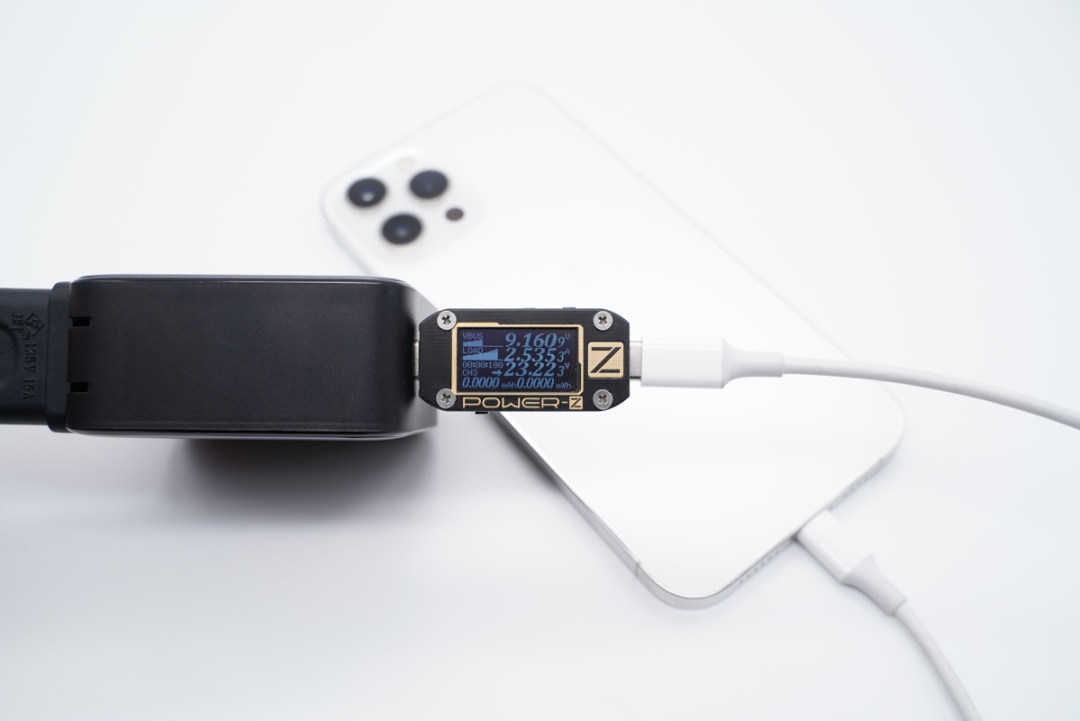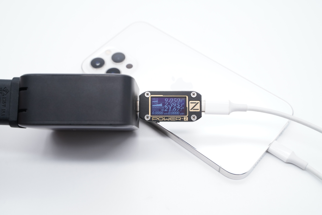 USB-C3 支持 22.5W PD 快速充电,使用 USB-C3 为 iPhone 12 Pro Max 充电,功率为 9.05V 2.39A 21.67W。