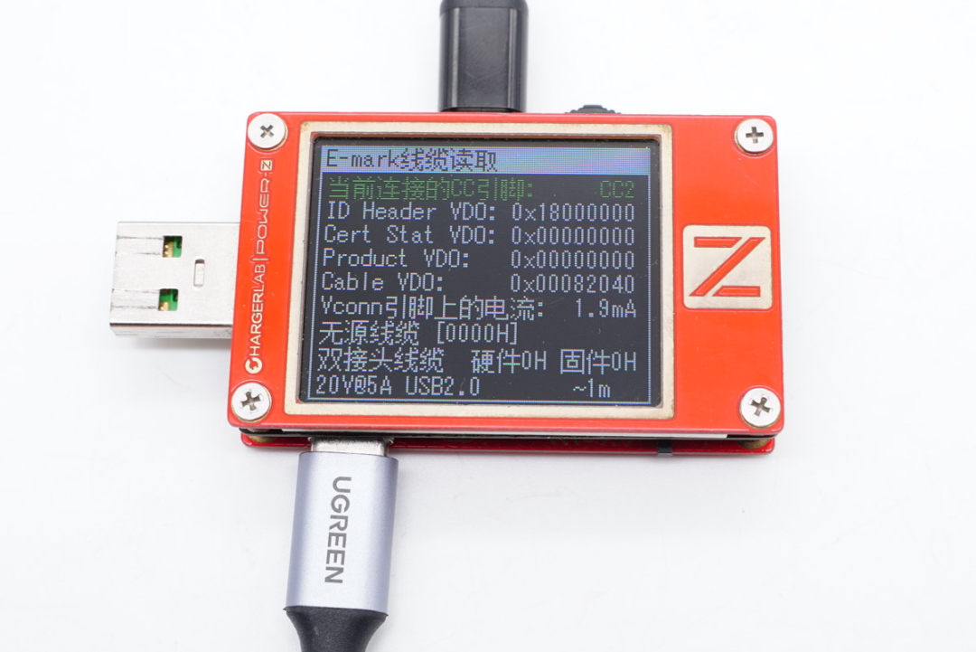 实际测得线材支持 20V5A 100W 的充电功率,除此之外还支持USB2.0标准的数据传输。