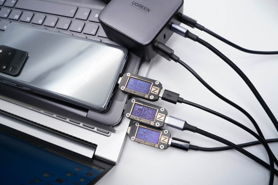 实际测试 UGREEN 绿联 100W 氮化镓充电器单口输出时可以提供 100W、100W、22.5W、22.5W 的快充功率,多口同时输出时 USB-C3 和 USB-A属同一路输出,USB-C3 和 USB-A 单独搭配其他接口输出时均可触发 9V 以上快充,当四口同时输出时 C3 和 USB-A 共享 22.5W 输出。具体测试详情可以查看文章第三个模块。