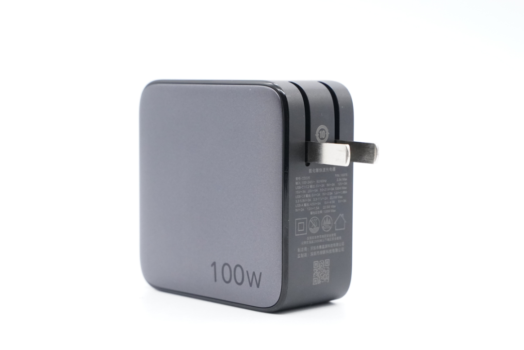 另一侧的 100W 标识也说明了充电器的性能表现。