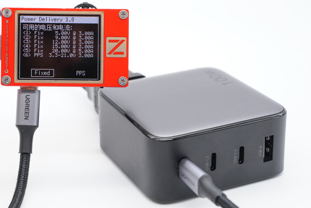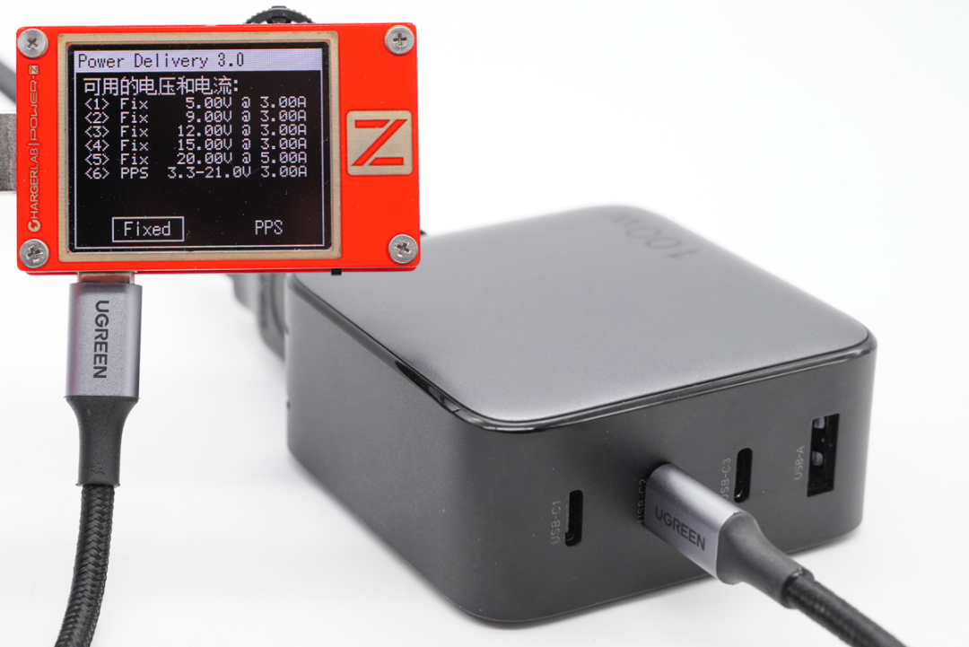 因为 USB-C1 和 USB-C2 在快充协议和 PDO 的支持上完全一致,所以以下仅测试 USB-C1 、USB-C3 和 USB-A 接口的兼容性。