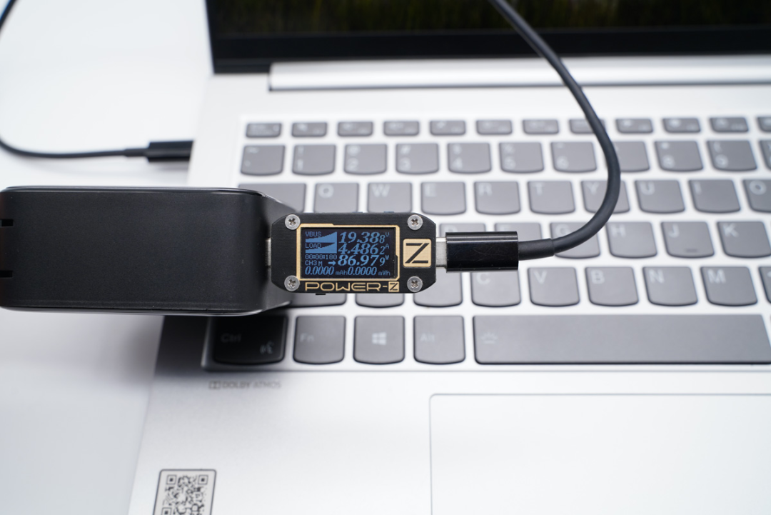 100W 的快充功率足可以满足绝大部分办公本的用电需求,为笔记本充电可以提供 19.38V 4.48A 86.97W 的快充功率。