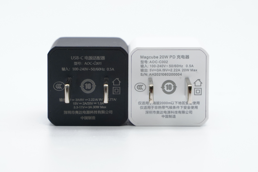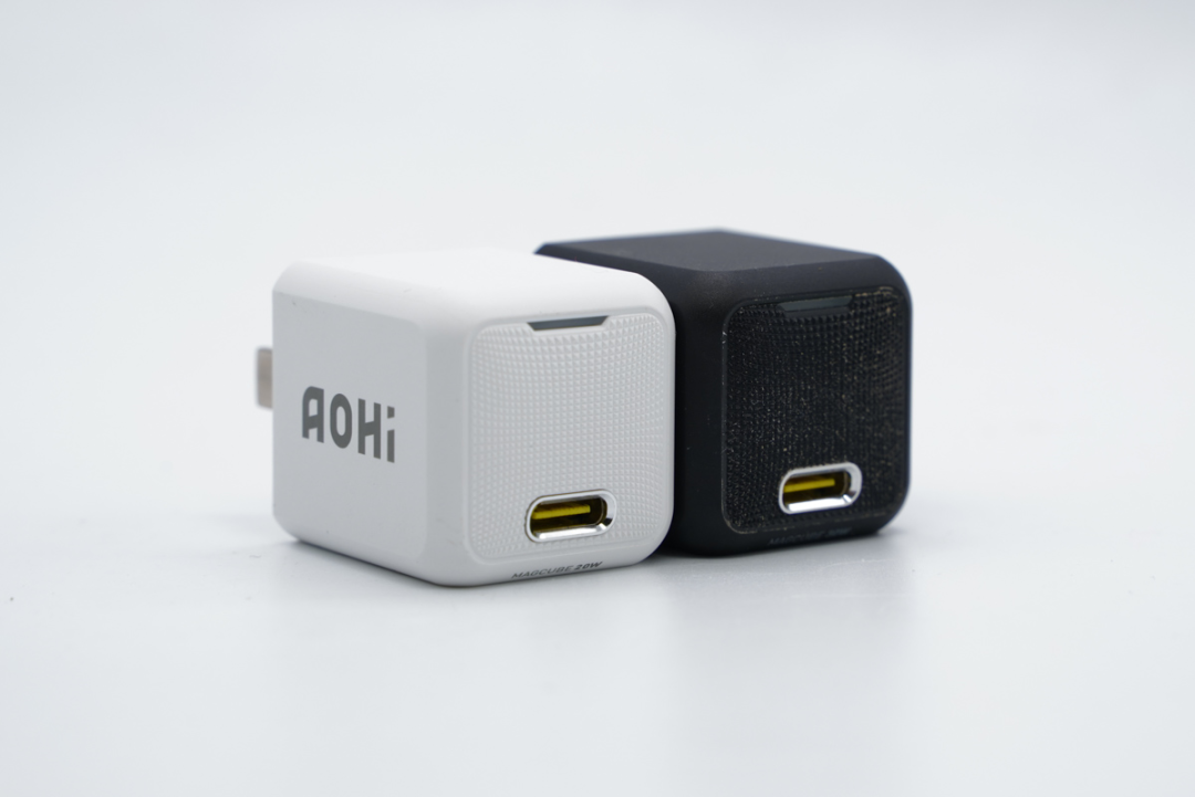 左侧为 Aohi 最新的 20W PD 充电器,右侧为 Aohi 30W 氮化镓充电器。