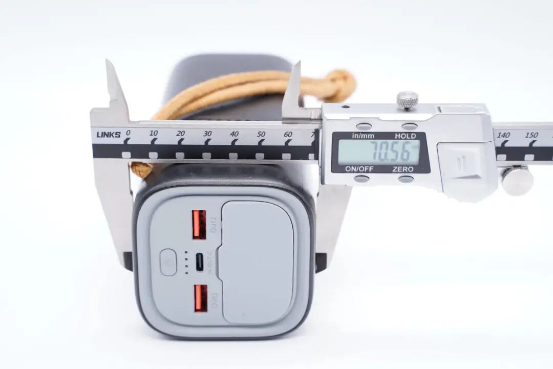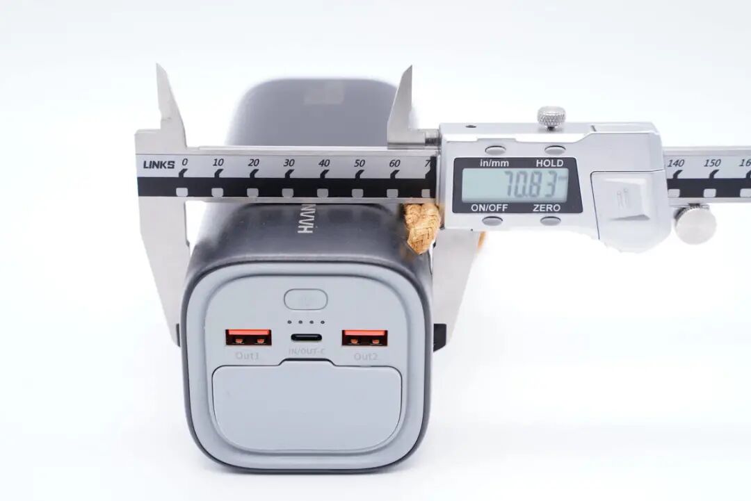 使用卡尺实测哈能HN100户外电源的长度约为153.65mm。
