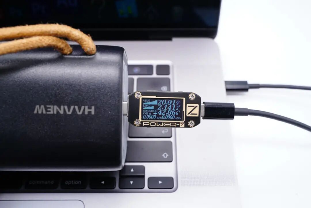 柱状图可以清楚的看出哪款设备的功率最高,处于第一的是MacBook Pro 16,功率为42.86W,因为USB-C支持45W的输出功率,几乎已经接近最大输出功率了。其他设备处于正常的快充状态。