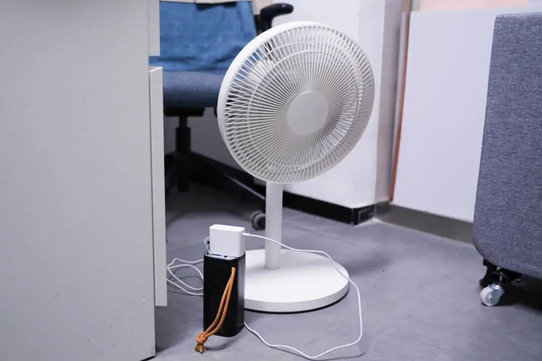 仅仅为笔记本充电那就太低估这款产品了,机身自带的220Vac输出接口可以发挥更多的作用,比如可以配备双插脚充电器的电风扇供电。