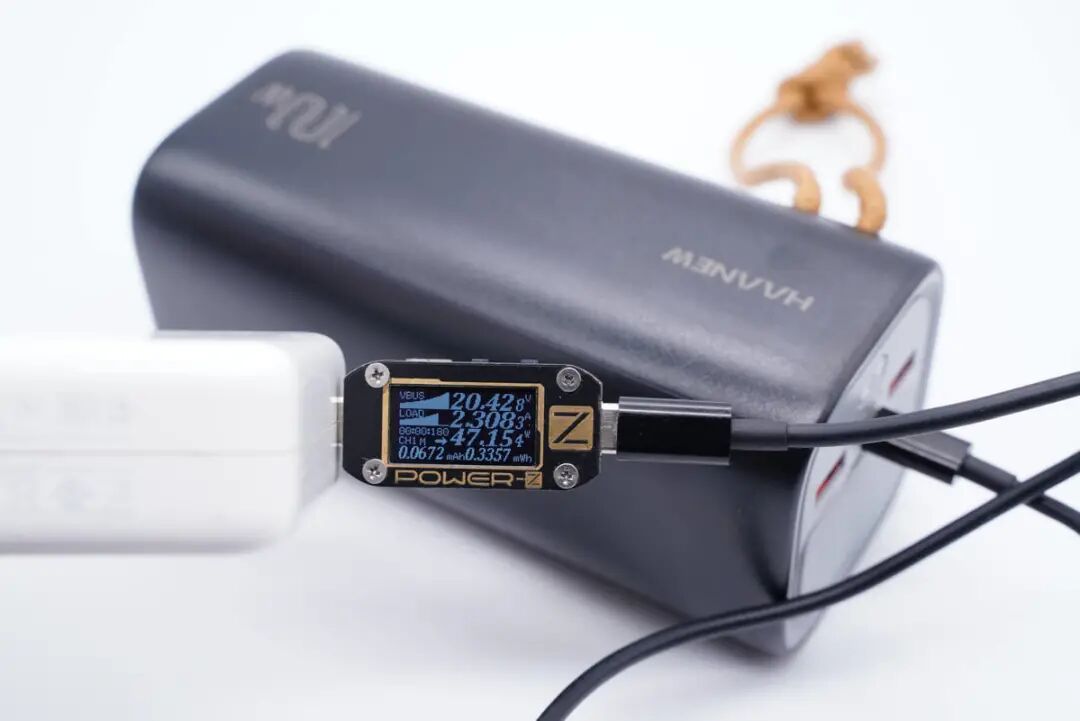 自充电方面,哈能HN100户外电源支持通过USB-C为自身补电,实测支持45W的输入功率,用户只需要使用45W及更高功率的PD充电器即可快速为户外电源补电,使用门槛大幅降低。