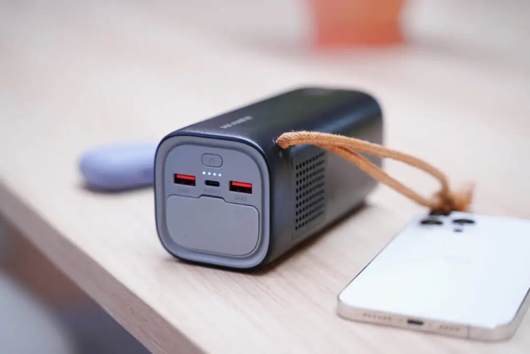 45W快充输出已经可以满足大部分办公笔记本电脑的用电需求,这款户外电源的重点是配备逆变输出接口,对于一些仅配备双插脚的用电器来说,即使USB-C接口功率再高,接口不匹配也无法使用,机身上面的220Vac输出接口可以极大的拓展出产品的使用范围,可以为很多配备双插脚的充电器供电,相较于传输大功率充电宝来说要更加的实用。各个接口各司其职,兼顾不同的用电设备。