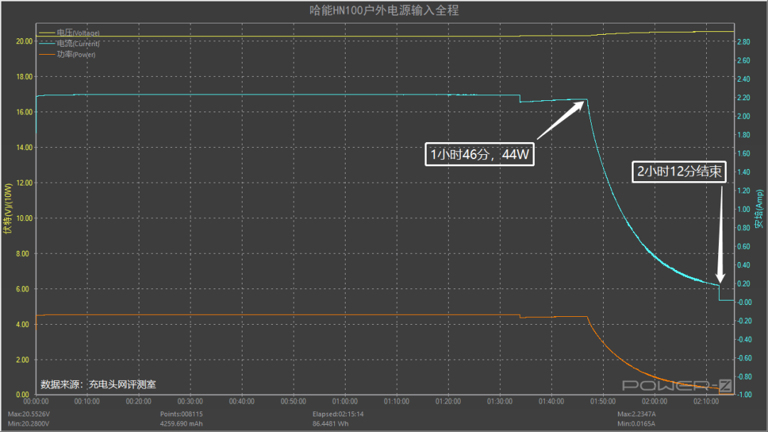 这里还采集了户外电源输入全程的数据,全程耗时约2小时12分。