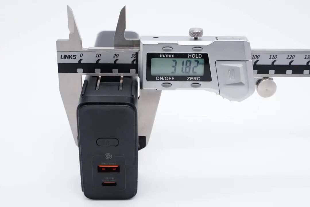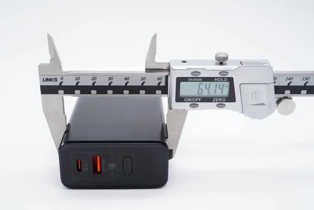 尺寸方面,使用卡尺实测Baseus倍思87W能量堆的长度约为107.87mm。