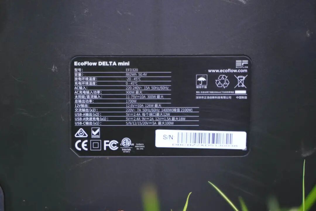 这里着重提一下MINI的自充电,很多户外电源的自充电设计都是需要一个很大的充电器,不仅不便携,而且自充功率也比较低。而MINI则是将充电器模块集成到了机身内部,并且支持快充,882Wh的电池能量仅需1小时30分钟左右就可以充满。并且由于充电器模块集成到了机身内部,连接插座的充电线的选择门槛也进一步降低,只要选择品字形接口的充电线即可。