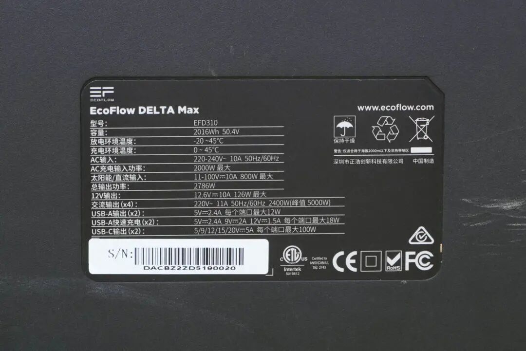 2、2度电储能2400W输出,EcoFlow正浩发布德DELTA Max户外电源