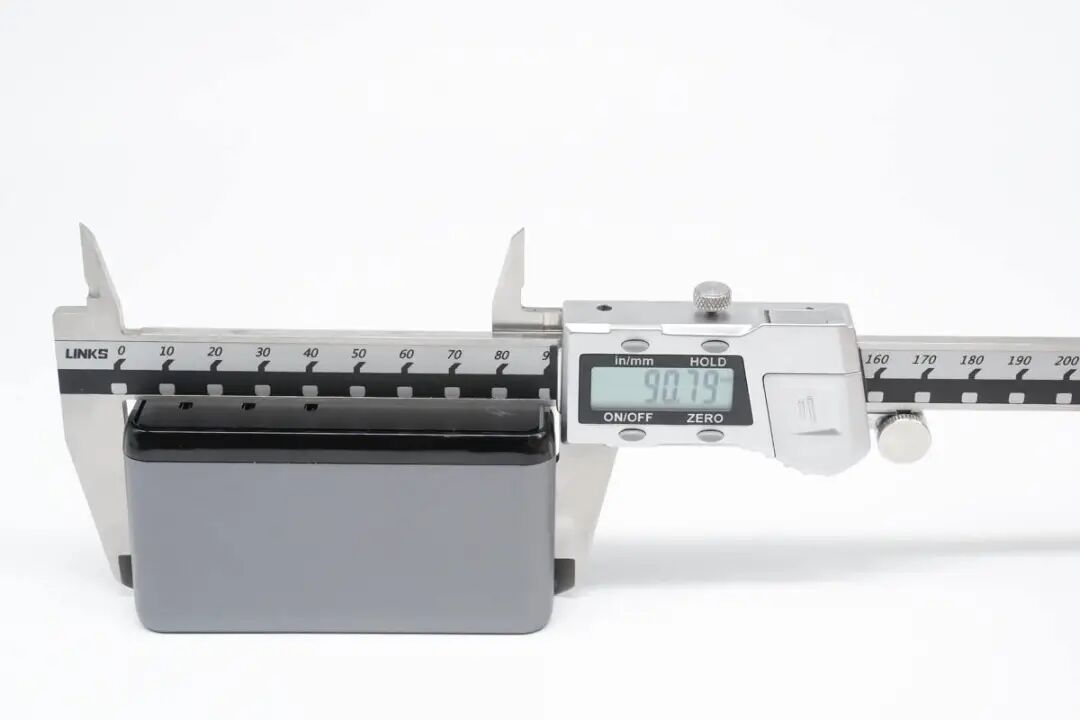 尺寸方面使用卡尺实测充电器的长度约为90.79mm。