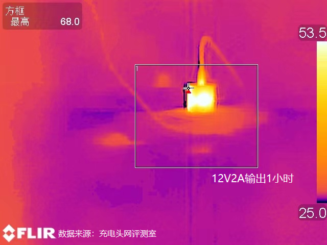 一小时后充电器正面最高温度约68℃。