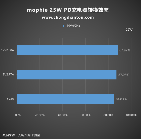 长时间使用,充电器会不会因为过热而降频?充电头网也对 mophie 25W PD充电器进行了测试。