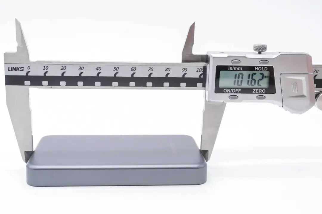 接下来测量充电宝的尺寸,长度约为101.62mm。