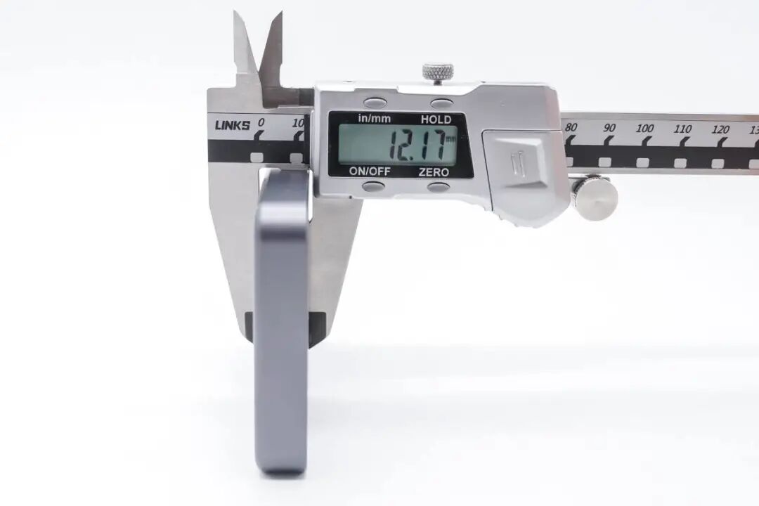 厚度对比一元硬币,差不多是一元硬币直径的一半。