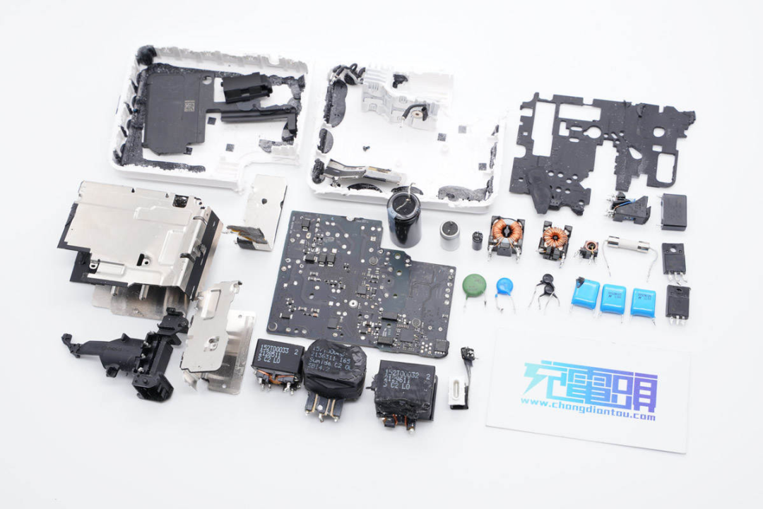 充电头网通过拆解了解到,苹果140W充电器保持苹果一贯的高水准用料做工要求。采用PFC+同步降压+LLC开关电源架构设计。输入端设有主动被动相结合的整流电路,控制器、MOS管大多为定制料号,来自意法、英飞凌、安森美、东芝等国际知名大厂。