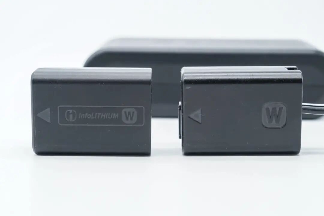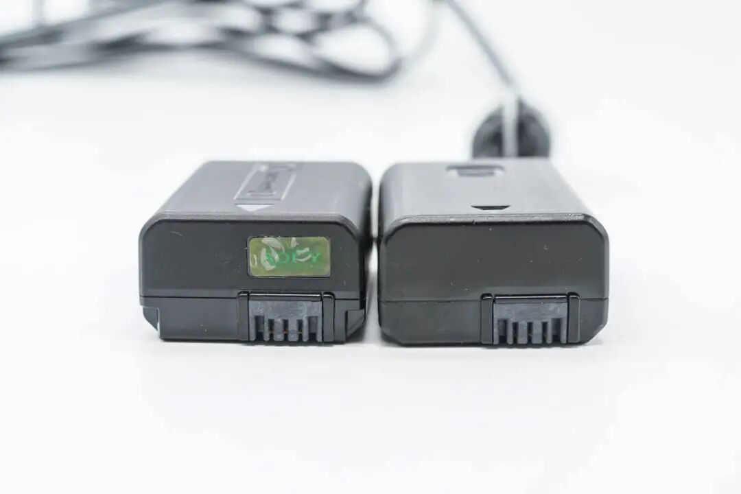 看完外观,接下来和原装的 Sony 相机电池做一下对比,这面看起来尺寸没有很大区别。
