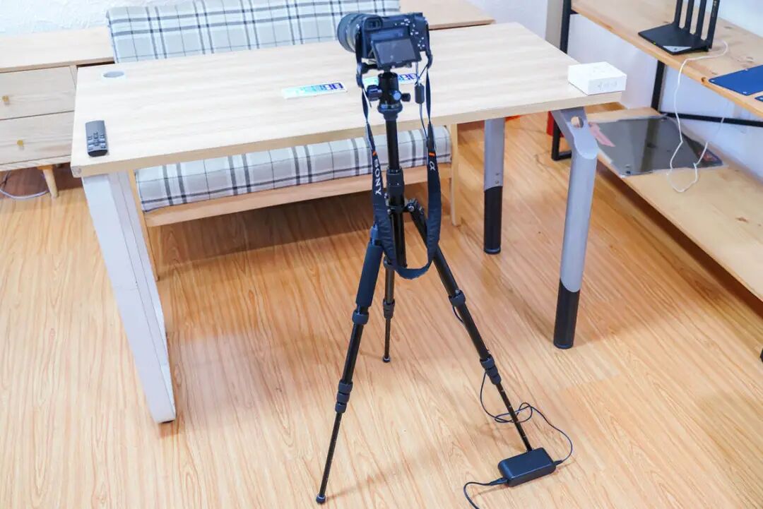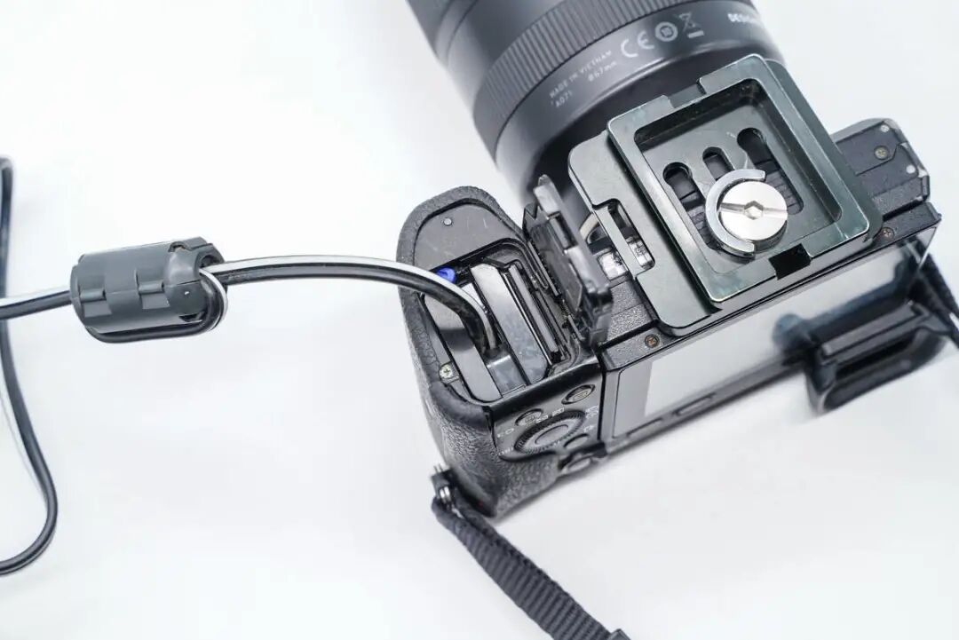 如果是固定机位拍摄,比如产品图拍摄,延时摄影和长时间录像,这种使用场景下,外接电池就能大显身手,这里使用的相机没有针对外接电池预留出线口,所以只能敞篷使用了。