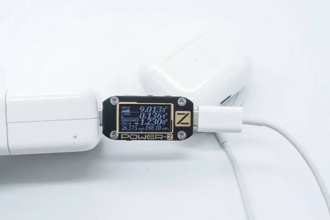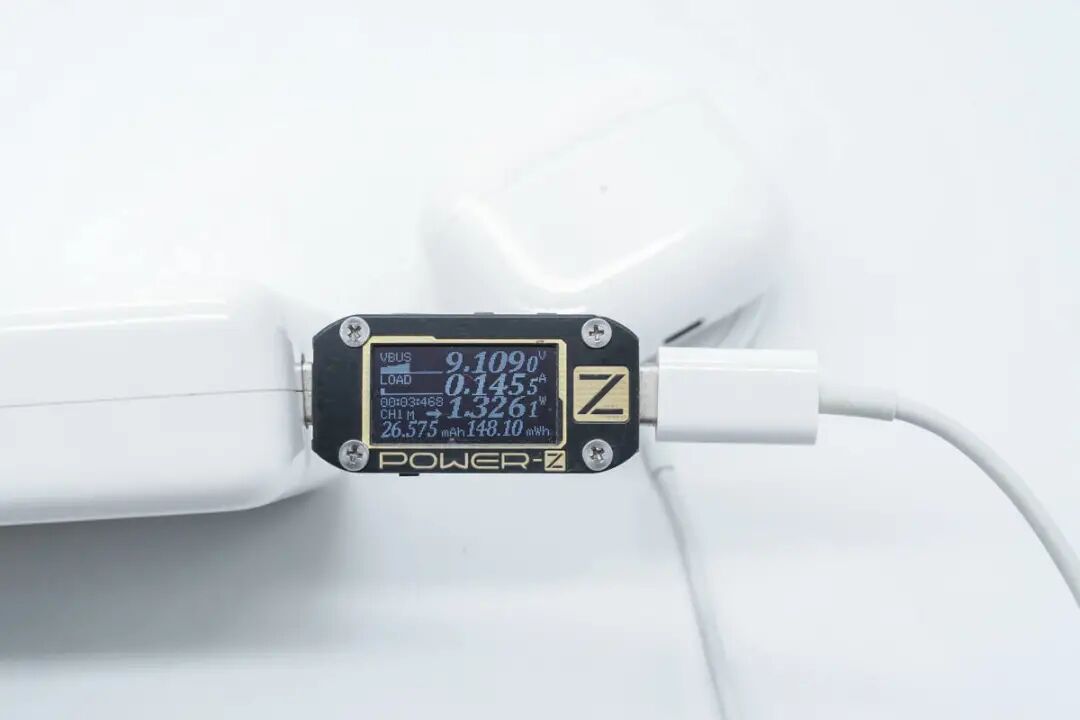 实测同样可以为 AirPods 3 充电,由于多个模块待机会耗电,这里就不再测量充电功率。